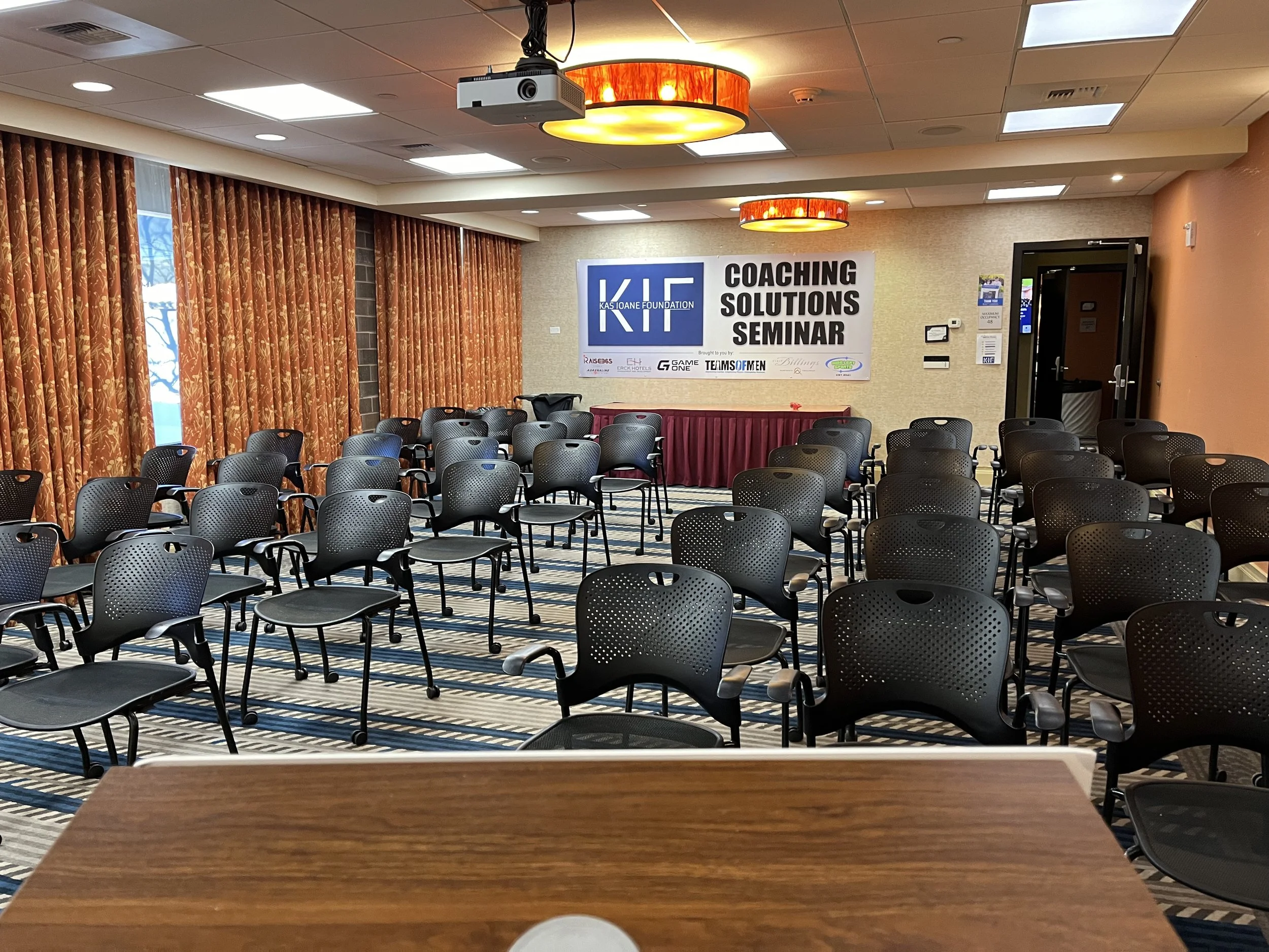 Over 60 area high school and youth football coaches attended and engaged with our speakers on the 2nd floor of the DoubleTree by Hilton Billings. Over the 8 hour day, they interacted with our vendors, networked at lunch and continued the great dialogue over food and beverage at Tiny’s Tavern.